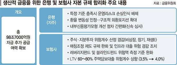 금융당국은 이번 자본비율 합리화 조치로 확보된 총 100조원의 추가 자금여력을 생산적 금융에 더 투자할 수 있을 것으로 기대하고 있다. 하지만 은행권과 보험업권은 추가 자금 공급에 난색을 표하고 있다.