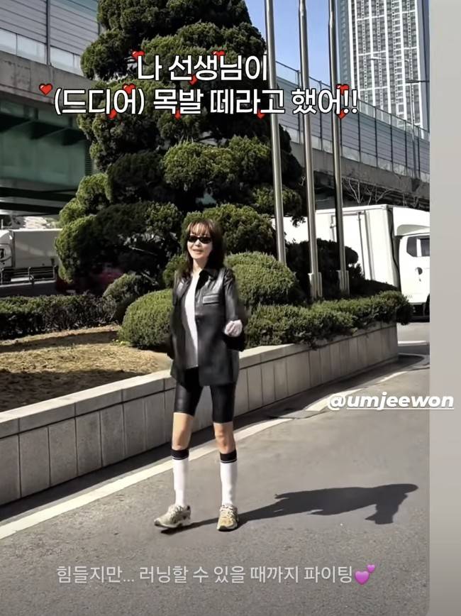 배우 엄지원이 다리 부상을 당한 후 재활에 매진하고 있는 가운데 다시 촬영 현장에 복귀했다는 소식이 전해졌다.