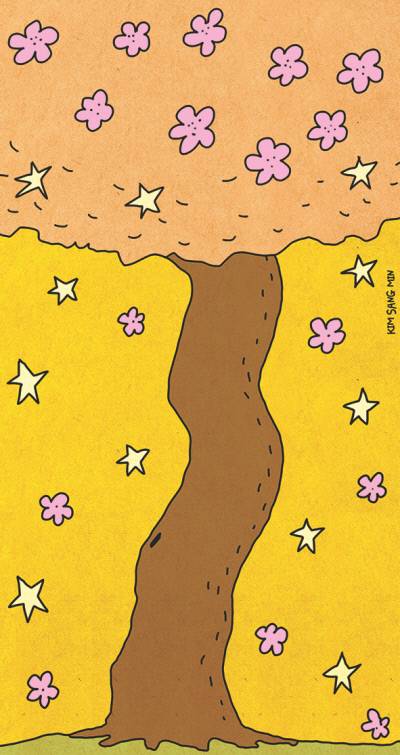 벚나무 객석에서 잠깐, 과학도 만났다. 트럼프를 업고 네타냐후가 일으킨 명분 없는 전쟁 사이 달의 이면을 육안으로 최초로 본 ‘아르테미스’가 지구로 귀환했다는 뉴스. 빨간 낙하산을 꽃잎처럼 펼치며 우주선이 태평양에 풍덩, 개화하고 있다. 뒤이어 <님아, 그 강을 건너지 마오>로 심금을 울렸던 할머니께서 맞교대하듯 허공으로 떠났다는 소식. 그 영화에서 고인은 할아버지와 코스모스 꽃밭에서 이런 대화를 나누셨지. “꽃이고 나뭇잎이고 다 사람과 똑같아요. 저 나뭇잎도 봄이 되면 피어서 여름 내내 비 맞고 잘 살다가 가을에 서리가 내리면 그만 떨어진단 말이야. 사람도 그것과 한가지래요.”