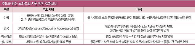 일각에선 정부 주도 투자기관의 필요성을 강조한다. 미국의 방산 혁신 투자기관인 인큐텔(In-Q-Tel) 모델이 대표적이다. 인큐텔은 미국 중앙정보국(CIA)이 1999년 설립한 전략 기술 투자기관으로, AI·드론·위성·센서 등 국가 안보 핵심 기술을 개발하는 스타트업에 선제적으로 자금을 공급해 시장 안착까지 연결하는 역할을 맡아왔다. 민간 VC가 단기 회수 가능성을 우선 본다면, 인큐텔은 국가 안보 차원에서 접근한다. 주요국에서도 유사한 모델이 자리 잡았다. 영국은 국가안보전략투자펀드(NSSIF), 프랑스는 디팡베스트(Definvest), 북대서양조약기구(NATO)는 혁신펀드(NIF)를 통해 방산 딥테크 스타트업의 스케일업을 지원한다.