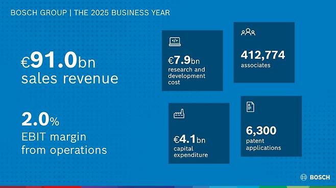 보쉬는 2025년의 부진한 경제 상황이 현재 사업연도에도 지속될 것으로 예상했다. 특히, 중동 전쟁의 아직 예측하기 어려운 영향 등 지정학적 상황으로 인한 높은 불확실성이 지속되면서 인플레이션과 글로벌 경제 성장에 계속 영향을 미칠 것으로 예상된다. 또 가격과 경쟁의 압박도 높은 수준을 유지하고 있다.