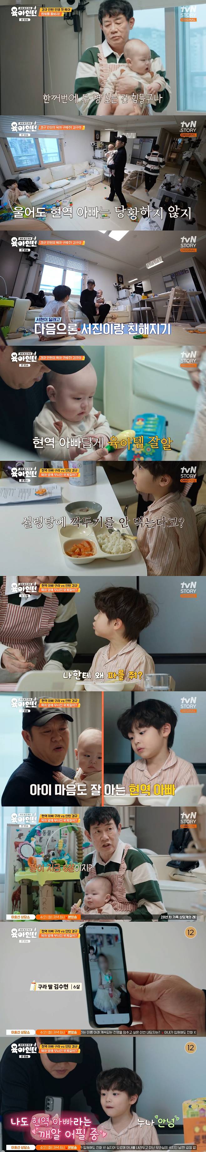 16일 방송된 tvN STORY '육아인턴' 2회에서 육아 레벨 제로 예비 할아버지 이경규를 위해 김구라가 긴급 투입되는 모습이 그려졌다.