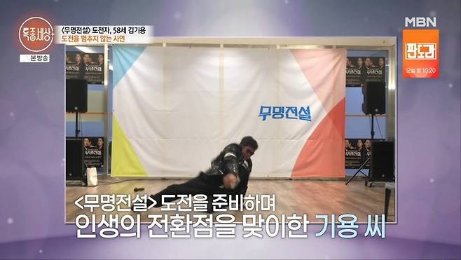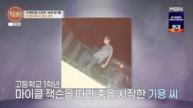 16일 방송된 MBN '특종세상'에서는 '무명전설'에 출연해 얼굴을 알린 김기용의 사연이 공개됐다. 58세라는 나이에도 불구하고 그는 여전히 춤을 추고, 노래를 연습하며 새로운 도전을 이어가고 있었다.