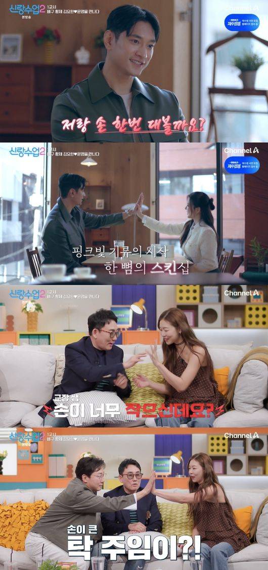 이때 탁재훈은 "손이 크다"라며 송해나와 손을 맞댔고, 깍지를 끼려 하자 송해나는 "아우 싫어"라고 외쳤다.