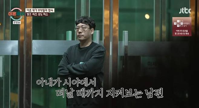 아내 역시 제작진과의 인터뷰에서 “선생님 뵙고 마음이 풀리긴 했다. 근데 남편이 상담을 통해 변할 거라는 믿음은 없다. 그 과정에서도 저는 똑같다는 걸 느꼈다”라며 마지막 대화를 하고 이별을 결심하는 모습을 보였다. 아내는 “(제작진이) 보여주셨던 정성이 있어서 최대한 남아서 해볼까 했는데 그렇게 하기엔 저희가 너무 멀리 온 것 같다”라고 중도 퇴소 의사를 밝혔다.