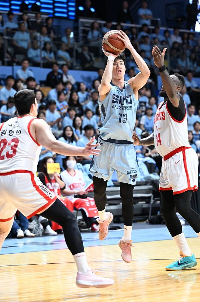 이정현(188cm, G), 케빈 켐바오(195cm, F), 네이던 나이트(202cm, C)로 이어지는 삼각편대의 위력은 여전했다. 그러나 이번 시리즈에서 눈에 띈 건 벤치 자원들의 활약이다. 소노는 시즌 내내 약점으로 지적됐던 부분을 지워갔다.