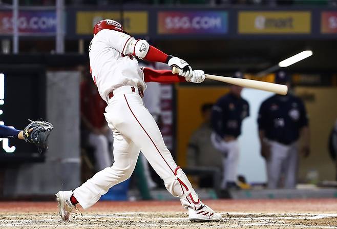 SSG는 곧바로 7회말 반격에 나섰다. 고명준과 최지훈의 연속 안타에 정준재의 볼넷이 더해진 2사 만루 기회에서 박성한이 좌중간 2타점 역전 적시타를 때려 경기를 뒤집었다.