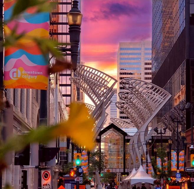 크레센트 하이츠는 캘거리 다운타운 북쪽 언덕에 위치한다. 정원처럼 펼쳐진 녹지와 빌딩 숲이 겹쳐지는 스카이라인을 한눈에 보여 주는 동네. 이곳의 전망은 도시의 야경을 가장 안정적으로 감상할 수 있는 포인트로 꼽힌다. 낮에는 보우 강을 따라 이어진 산책로와 공원이 일상의 속도를 늦추고, 해 질 무렵이면 붉은 노을 위로 도시의 실루엣이 또 다른 얼굴을 드러낸다. 차무희와 히로가 캘거리의 선셋 전경을 감상하는 장면이 이곳에서 촬영됐다.