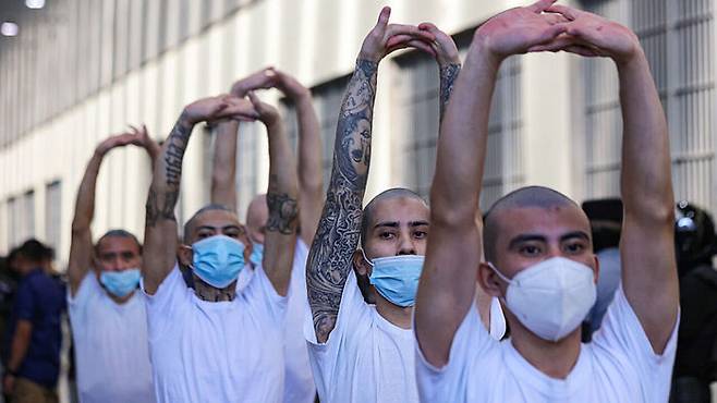 부켈레 대통령은 지난 2022년 국가비상사태를 선포한 뒤 치안 당국을 동원해 현재까지 9만 1천여 명을 범죄단체 조직 혐의 등으로 체포했습니다.