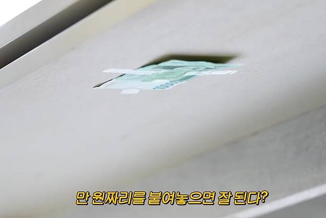 사무실 내부를 둘러보던 신부는 책상 밑에 붙은 만원짜리 지폐 한 장을 확인하고는 "이런 건 처음 본다"며 당혹감을 감추지 못하는 모습으로 웃음을 안겼다.