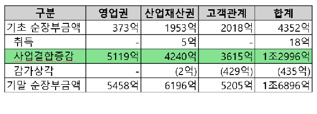 이런 식으로 지난해 M&A 때문에 인식하게 된 무형자산 증가액(영업권, 고객관계, 산업재산권 등)은 모두 1조2996억원인 것으로 재무제표 주석은 기재하고 있습니다. K-IFRS 회계기준에 따르면 영업권은 상각(일정기간동안 나누어 비용인식)대상이 아니지만, 고객관계 등은 상각을 해 나가야 합니다.