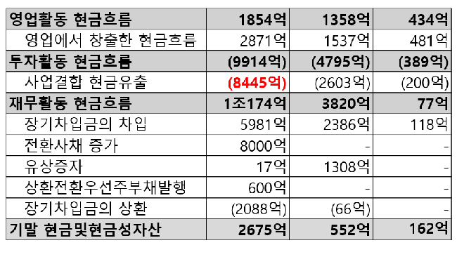 부채항목으로 가보면 매입채무나 차입금, 전환사채는 이해가 가는데, 단기파생상품부채로 3563억원이나 잡혀있는 게 눈에 띕니다. 간단하게 말하면 주원인은 지난해 M&A 자금조달을 위해 FI(재무적투자자)들에게 발행한 8000억원 전환사채(CB)에서 파생한 부채라고 할 수 있습니다.