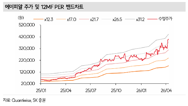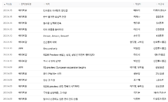 시장에서 에이피알의 미래를 어떻게 전망하고 있으며 어떤 평가를 내리고 있는지 짐작이 갑니다.