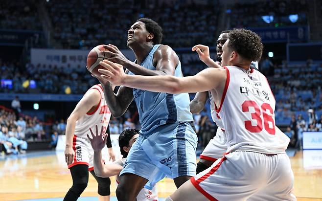 3쿼터 잠잠하던 나이트가 터졌다. 골밑에서 SK 자밀 워니를 막느라 수비에 집중하던 나이트가 8점을 몰아치며 공격에서도 힘을 보태기 시작했고, 소노는 리드를 더 벌리며 54-45로 달아났다.