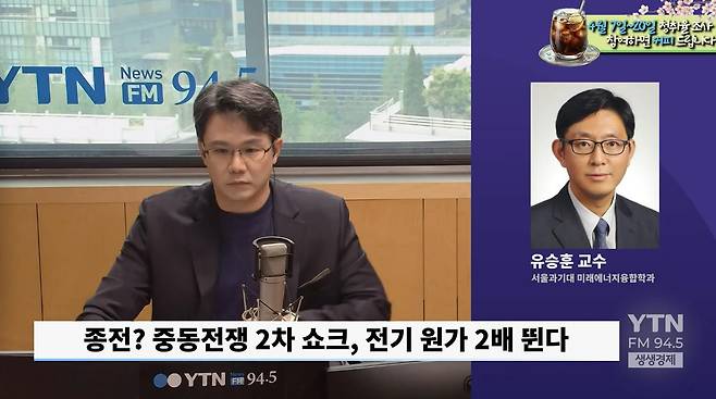 ◆ 조태현 : 요즘 국제유가 올랐다는 이야기 계속 말씀을 드리고 있죠. 그런데 이거는 보통은 선물 가격이고요. 현물 가격은 이것보다 훨씬 높습니다. 100달러가 넘는 상태예요. 휘발유 경유 리터당 2천 원 시대, 우리는 이런 시대에 지금 살고 있습니다. 중동 전쟁이 종전 무드로 급물살을 타면서 지금의 고유가가 조금 진정될까라는 기대감이 있긴 한데요. 일각에서는 '지금 당장 종전이 돼서 호르무즈가 열려도 앞으로 줄어든 공급 물량 당분간 회복하지 못할 것이다'라는 가능성도 제기하고 있습니다. 당장 지금 걱정이 되는 거예요. 올해 벌써부터 덥죠? '올 여름 냉방비 어떻게 하나' 많은 분들이 걱정을 하실 것 같습니다. 전문가와 함께 진단해 보도록 하겠습니다. 유승훈 서울과학기술대학교 미래에너지융합학과 교수님 연결돼 있습니다. 교수님 나와 계십니까?