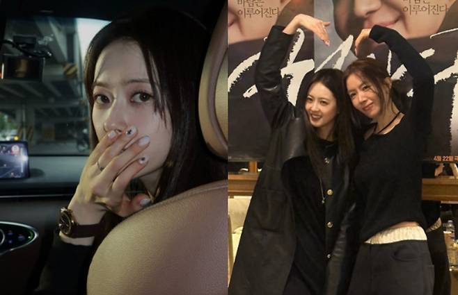 특히 고아라의 게시물 중 가장 시선을 사로잡은 것은 정우의 현실 아내인 배우 김유미와의 조우 장면을 담은 사진이었다. 고아라는 영화 '짱구'의 기획에 참여한 김유미와도 함께 하트를 그리며 다정한 인증샷을 남겼다. 극 중 '남편'이었던 정우의 실제 아내와 함께 환한 미소를 짓는 모습은 팬들에게 색다른 즐거움과 유쾌한 케미를 선사하며 큰 관심을 모았다.