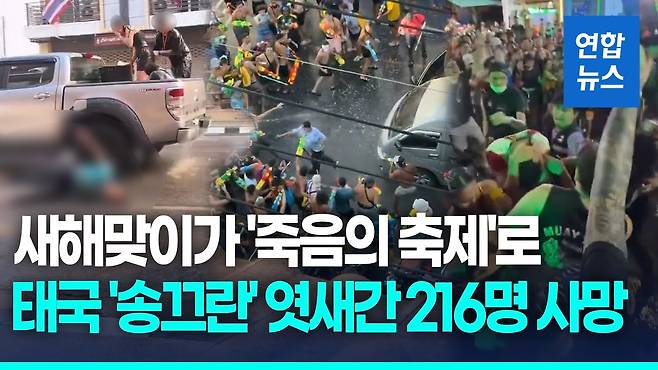 (서울=연합뉴스) 태국의 전통 설 축제인 송끄란이 대규모 관광 특수로 들썩이고 있지만, 교통사고와 각종 안전사고가 속출하며 '죽음의 축제'라는 어두운 그림자도 드리우고 있습니다.