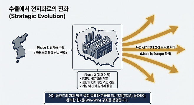 한국과 폴란드의 방산 협력은 이점까지 염두에 둔 방식으로 진행되고 있다. 2022년 포괄적 계약을 맺었을 때 1차 계약은 당장 급한 무기 수급에 방점을 뒀고, 2차 계약부터는 폴란드 현지화와 함께 진행하기로 했다. 폴란드 입장에서는 기술 이전을 받을 수 있고 유지보수 체계를 자국 안에 구축할 수 있다. 무엇보다 폴란드 내에 제조 공장이 생기고 일자리가 생긴다.