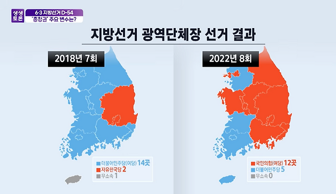 네 이어서 당내 상황과 전체 구도 살펴보도록 하겠습니다. 역대 선거 기록도 시사하는 바가 큰데요. 과거 데이터를 좀 볼까요? 2018년 7회 지방선거에서 광역단체장 선거 결과를 보면 더불어민주당이 14곳, 자유한국당이 2곳, 무소속이 1곳을 차지했고요. 2022년 8회 지방선거에서는 국민의 힘이 12곳 더불어민주당 5곳을 차지했습니다. 자 이번 지방선거에서도 통할 수 있을지 그리고 몇 대 몇으로 예측하고 계신지 먼저 평론가님께 질문드리겠습니다.