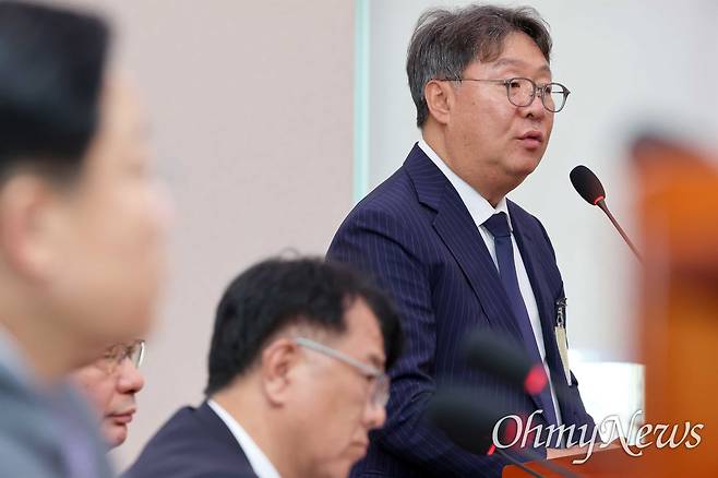 | ▲ 증언대에 선 방용철 전 쌍방울그룹 부회장 방용철 전 쌍방울그룹 부회장이 14일 서울 여의도 국회에서 열린 '윤석열 정권 정치검찰 조작기소 의혹 사건 진상규명 국정조사'에 증인으로 출석해 답변하고 있다. |