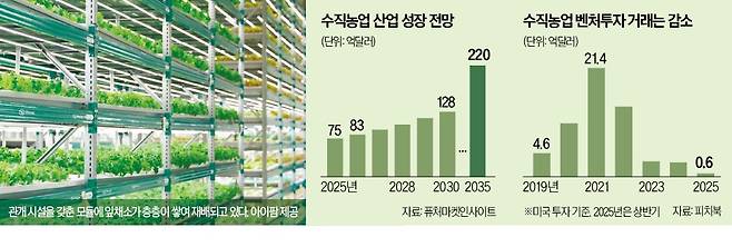 21억4000만달러(약 3조2000억원). 미국 벤처캐피털(VC)이 2021년 한 해 수직농업에 쏟아부은 자금이다. 최근 투자금은 2억달러(약 3000억원)로 쪼그라들었다. 높은 에너지 비용, 규모 확장의 어려움으로 관련 스타트업이 줄지어 파산한 영향이다.
