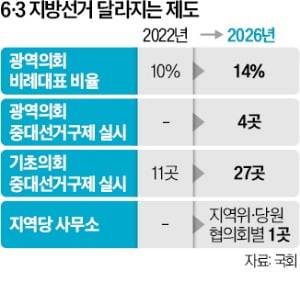 기초(시·군·구)의회 선거에선 중대선거구제 시범 실시 지역을 16곳 추가한다. 중대선거구제는 소선거구제에 비해 다양한 정당에서 당선자를 낼 수 있어 소수 정당들이 대폭 확대할 것을 요구해 왔다. 조국 혁신당, 진보당, 기본소득당, 사회민주당 등 진보 4당은 “턱없이 부족한 수준”이라고 지적했다.