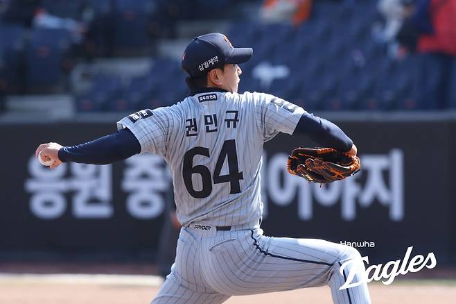 한화는 17일 부산 사직야구장에서 열릴 예정이었던 2026 신한 SOL KBO리그 롯데 자이언츠와의 정규시즌 1차전이 우천으로 취소되기 전 1군 엔트리를 조정했다. 투수 권민규를 1군으로 올렸고, 이교훈을 2군으로 내려보냈다.