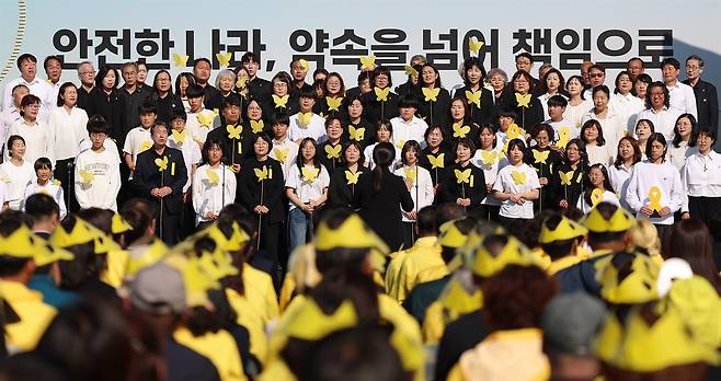 | ▲ 4·16합창단과 시민합창단이 16일 경기도 안산 화랑유원지에서 열린 세월호 참사 12주기 기억식에서 추모 공연을 하고 있다. 2026.4.16 |