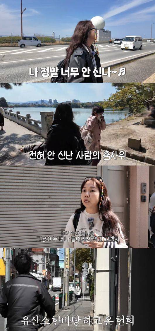 이날 후쿠오카로 혼자 여행을 떠난 홍현희는 선우용여가 극찬했던 우동집을 찾았다. 폭풍 흡입 후 오호리 공원으로 향한 그는 “하나도 안 신난다”라면서도 즐거운 발걸음은 숨기지 못했다.