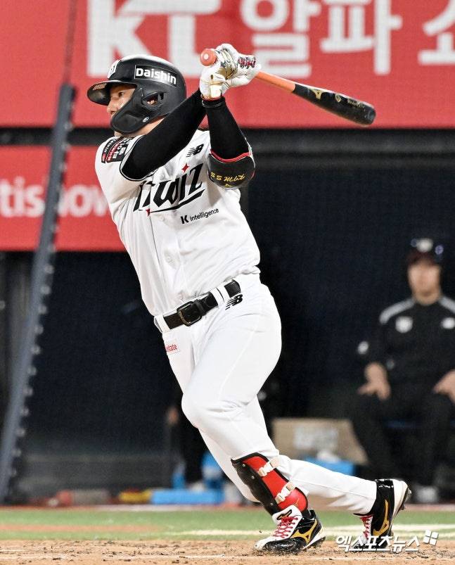 전날까지 팀 타율(0.283), 득점(107점) 1위를 달리던 KT 타선은 이날도 초반부터 맹활약을 펼쳤다. 1회 선두타자 최원준이 키움 선발 와일스를 상대로 우중간 2루타를 때려내 포문을 열렀다. 이어 3루 도루까지 성공하며 무사 3루가 됐다.
