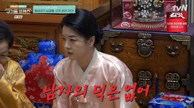 [TV리포트=한수지 기자] '구기동 프렌즈' 멤버들이 동거 첫날부터 각종 소동을 벌인 가운데, 무당을 찾아간 장도연의 연애운이 공개됐다.