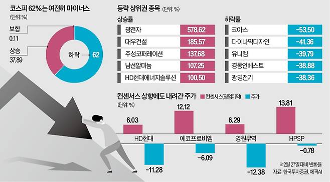 염동찬 한국투자증권 연구원은 “이익 전망이 개선됐는데 주가가 낮다면 밸류에이션 매력이 커졌다는 의미”라며 “지수 상승기에 가려진 저평가 종목에 대한 선별적 접근이 필요하다”고 말했다.