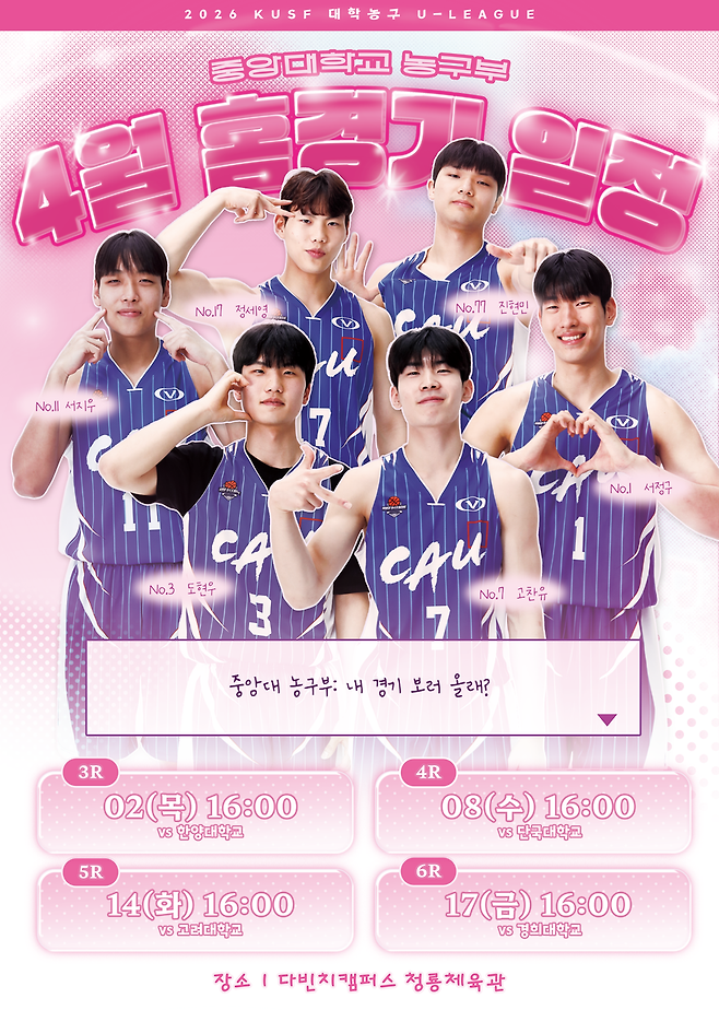 중앙대는 17일 중앙대 다빈치캠퍼스 청룡체육관에서 열린 2026 KUSF 대학농구 U리그 경희대와의 맞대결에서 89-73으로 승리했다. 연승의 숫자가 하나하나씩 늘더니, ‘6’까지 늘려졌다. 중앙대는 시종일관 리드를 가져가는 등 압도에 가까운 경기력을 보였다.