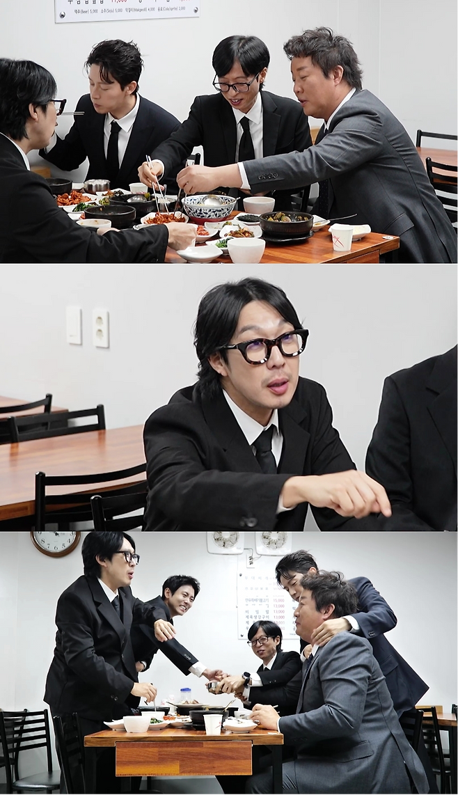 유재석은 정준하를 보며 “형 소화 못 시키니까 먹지 마”라고 말해 웃음을 안긴다. 여기에 하하까지 “형 이거 다 못 먹지?”라고 도발하며 정준하의 자존심을 제대로 건드린다.