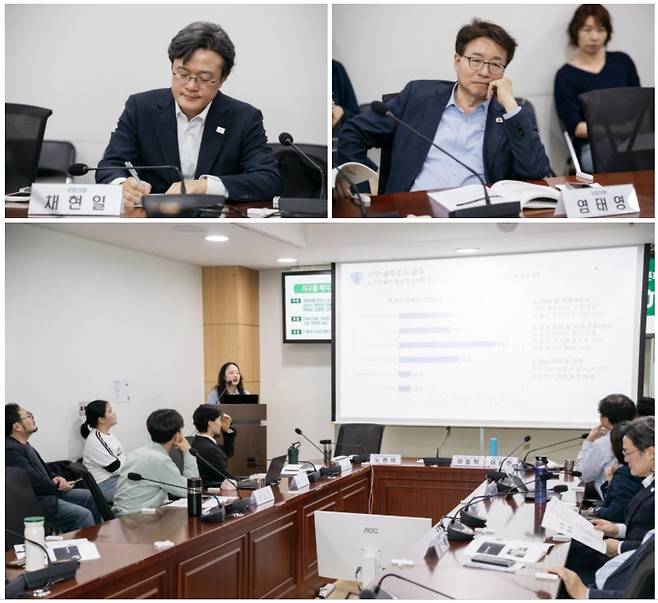| ▲ 토론회를 경청하는 채현일·염태영 의원과 유권자 인식 설문조사에 대해 발제하는 홍다경 '지지배' 공동대표 |