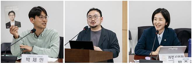 | ▲ 발언하는 박제민(녹색정치연구소 공동대표), 노현석(부산환경운동연합 협동사무처장), 박주리(과천시의원) |