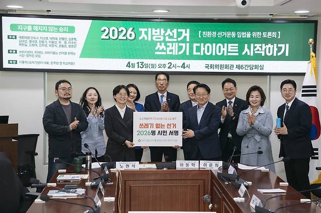 선거철마다 거리 곳곳을 도배하는 현수막과 집집마다 쌓이는 종이 공보물. 민주주의의 축제라 불리는 선거가 끝난 뒤 남는 것은 막대한 양의 쓰레기다. 2026년 지방선거를 두 달여 앞두고, 이러한 선거 쓰레기 문제를 해결하기 위한 구체적인 입법 대안과 시민들의 목소리가 국회에 전달됐다.