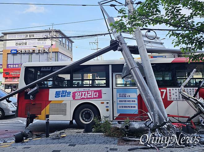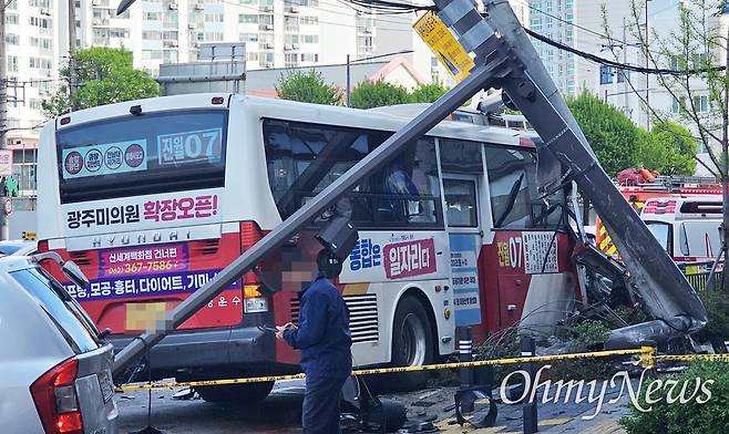 광주서 시내버스 전신주 '쾅'…승객 14명 부상·정전 피해