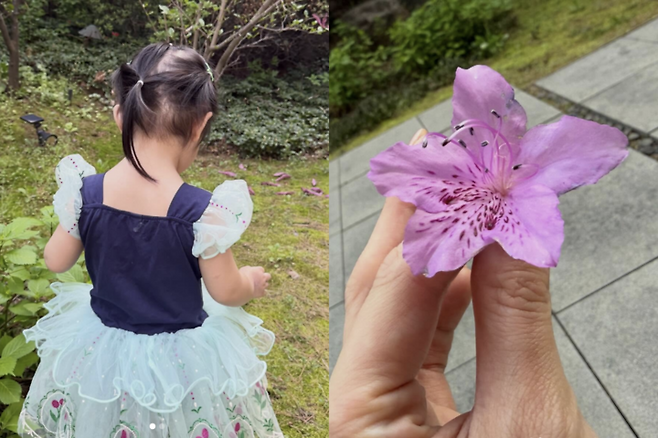 지난 14일 이민정은 개인 계정에 딸의 뒷모습과 분홍색 꽃잎 사진을 업로드했다.
