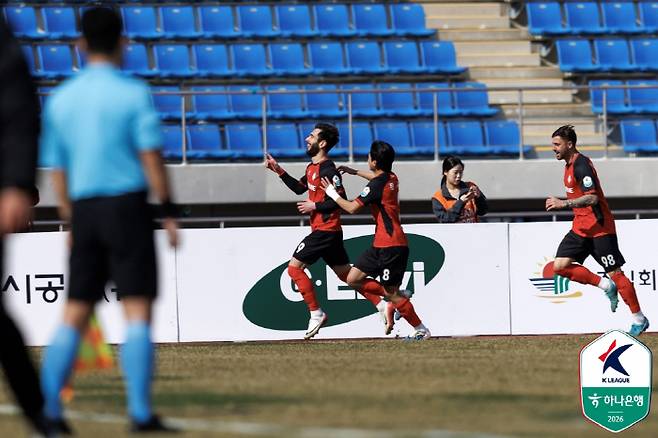 청북청주와 김해는 18일 청주종합운동장에서 '하나은행 K리그2 2026' 8라운드를 치른다. 충북청주(승점 5)는 13위, 김해(승점 1)는 최하위다.