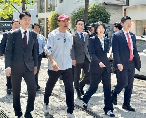 [연남동에서 오찬 후 산책하는 오세훈 서울시장 (서울시 제공=연합뉴스)]