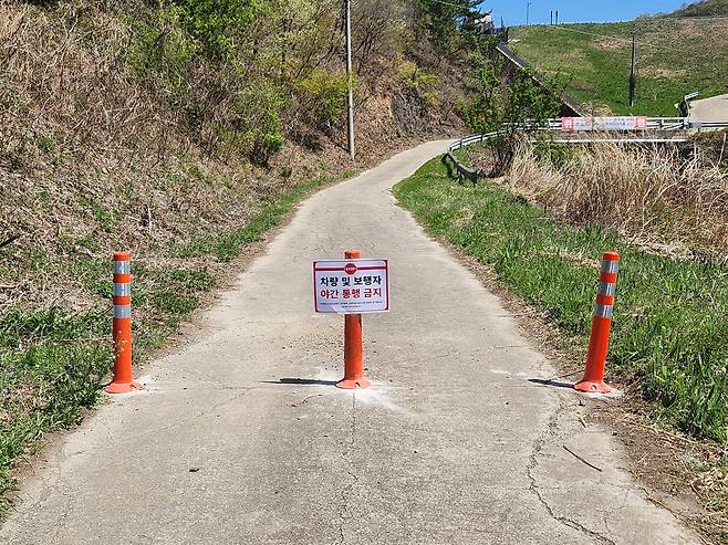 | ▲ 16일 충남 예산군 광시면 살목지. 차량이 살목지 둑방으로 올라가지 못하도록 차단봉이 세워졌다. |