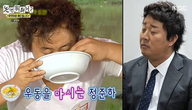 주우재도 "'무한도전' 키즈로서 형이 우동 한 50그릇 한번에 해치우는 걸 보면서 제 마음속의 영웅이었다. '나도 저런 어른이 돼야지'라고 생각했다. 근데 이제 이거 한 그릇을 못 드시네"라며 위장 전성기 시절 정준하가 우동을 마시는 영상을 보여주었다. 정준하는 "오늘 이것 때문에 부른 거야?"라며 "못 먹는 게 아니라니까. 나 잘 먹어"라고 발끈해 웃음을 자아냈다.