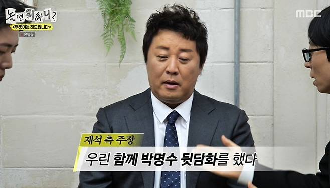유재석이 "난 명수 형 앞에서 얘기하는데?"라고 하자 정준하는 "그 얘기다. 와전된 얘기지"라고 진땀을 흘렸다. 그렇게 별안간 열린 청문회. 유재석은 "박명수 뒷담화를 같이하지 않았냐. 그리고 뒷담화 시작할 때 형이 먼저 와서 '박명수가 네 얘기 엄청 하던데?'라고 하지 않았냐"라고 추궁했다. 결국 정준하는 "일단 미안해요"라고 사과했다. 유재석은 "왜 이상한 얘기를 하고 다니냐"고 했고, 하하는 "그러니까 형이 쏴라"라고 밝혔다.