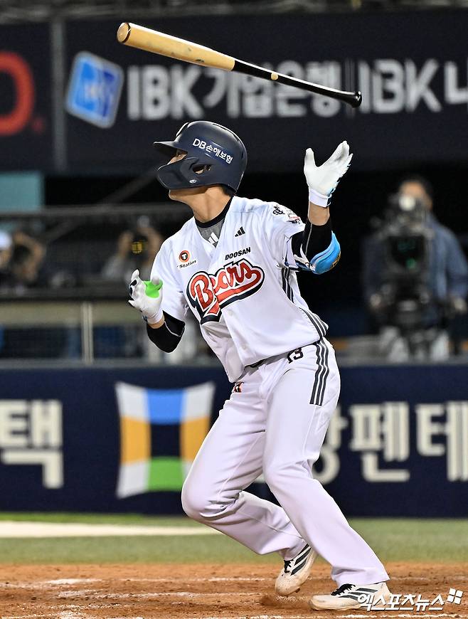 반격에 나선 두산은 8회말 양의지의 솔로 홈런과 정수빈의 동점 적시타로 4-4 균형을 맞췄다. KIA가 10회초 무사 만루 기회를 살리지 못한 가운데 두산은 10회말 김민석의 2루타로 물꼬를 텄고, 이유찬이 중견수 뒤를 넘어가는 끝내기 2루타를 완성했다.