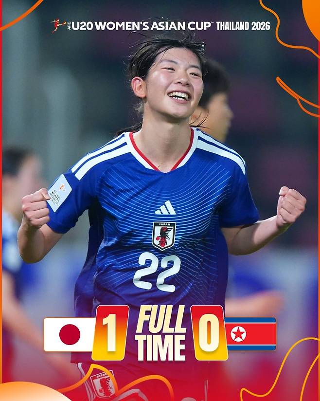 일본은 18일(한국시간) 태국 빠툼타니주의 탐마삿 스타디움에서 열린 2026 아시아축구연맹(AFC) U-20 여자아시안컵 결승전에서 북한을 1-0으로 꺾고 우승을 차지했다.