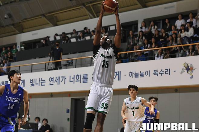 프레디는 콩고민주공화국 국적임에도 지난해 KBL 신인선수 드래프트에 참가해 서울 SK의 지명을 받았다. 더구나 건국대는 골밑 존재감을 발휘한 프레디를 앞세워 2022년과 2024년 챔피언결정전에 오르는 등 4년 연속 플레이오프에 진출했다.