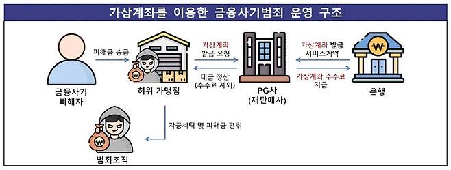 사기범들은 타인 명의의 가상계좌를 돈 주고 사서, 가상계좌가 발급된 가맹점과 무관하게 보이스피싱에 악용하고 있습니다.