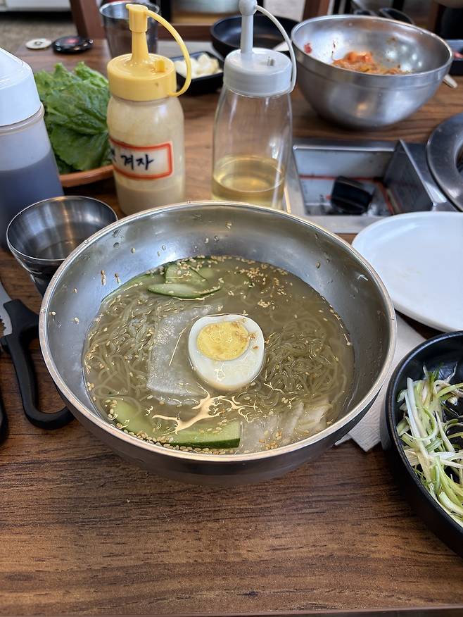 | ▲ 시원한 냉면과 지리산 삼겹살 |