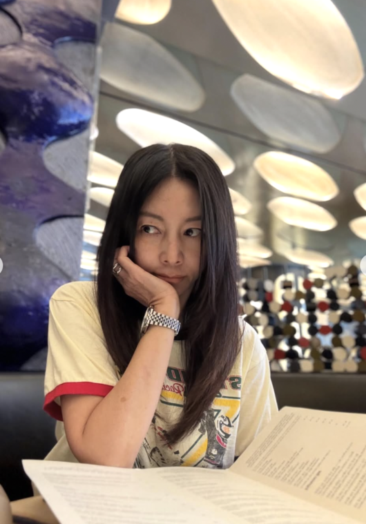 또 다른 사진에서는 레스토랑에서 메뉴판을 바라보며 턱을 괸 채 카메라를 응시하는 모습이 담겼다. 꾸밈없는 표정과 분위기 속에서도 또렷한 이목구비와 동안 미모가 그대로 드러나 감탄을 자아낸다.